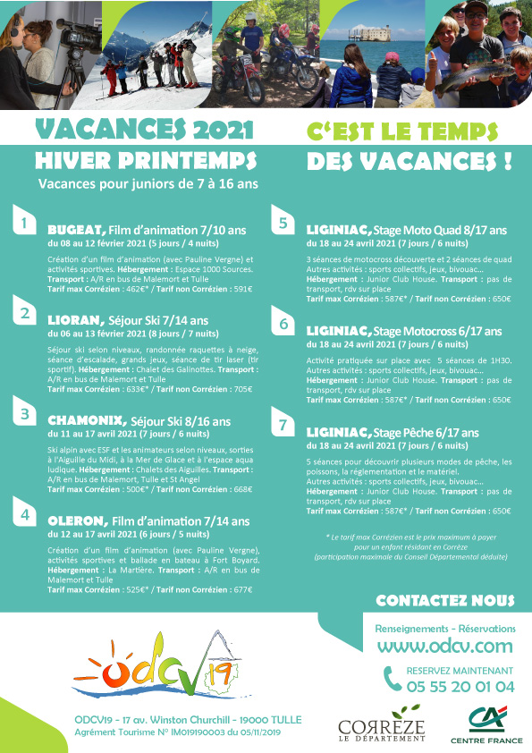 Téléchargez la version électronique de notre brochure Vacances Juniors Hiver Printemps 2021